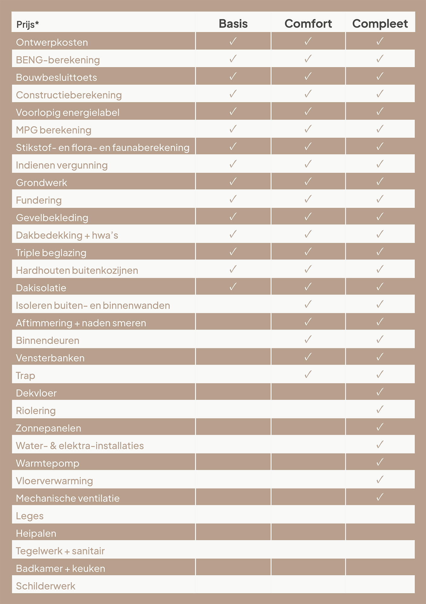 Wilt u weten hoe hoog de investering is voor een vakantiewoning naar uw wensen? Vul dan vrijblijvend het offerteformulier in of neem op een andere manier contact op. In het kort inventariseren we uw wensen en geven direct een indicatie.